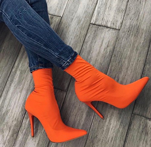 (Shoe Republic)/Women's/Boots/DIRECT FROM USA/Shoe Republic Carreta Ankle High Pointed Pointy Toe Elastic Stretchy Stiletto Heel Nylon Sock B...