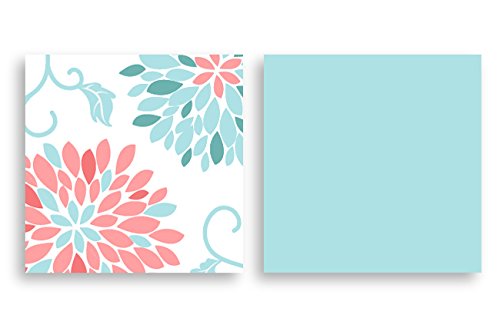 This set combines a stunning large floral print and coordinating solid turquoise