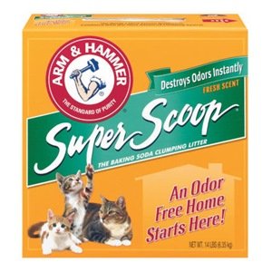 Studio : Arm Hammer Publisher : Arm Hammer Binding : Misc. Product Description An odor free home starts here. Just remove waste, no need to completely change litter, clumps hard fast to lock in odors. No crumbling, baking soda destroys odor on contact. Size: 20 lb Super scoop clumping litter Just remove waste, no need to completely change litter, clumps hard fast to lock in odors No crumbling Baking soda destroys odor on contact. 0