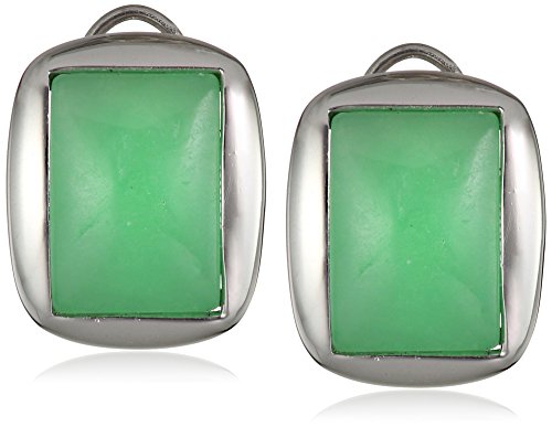 Rhodium-Plated Sterling Silver Green Jade Rectangle Omega-Back Earrings