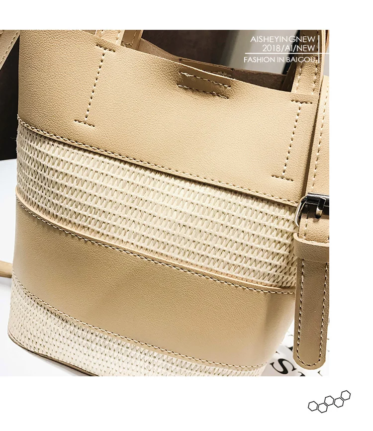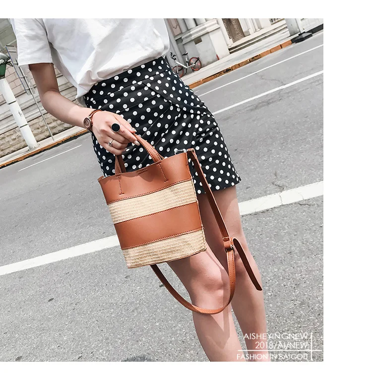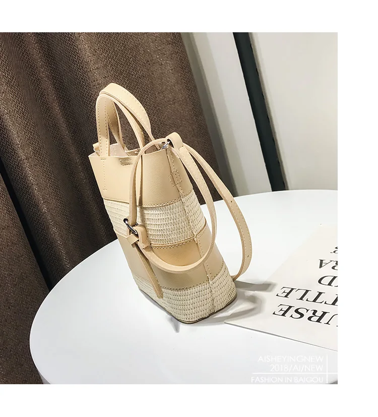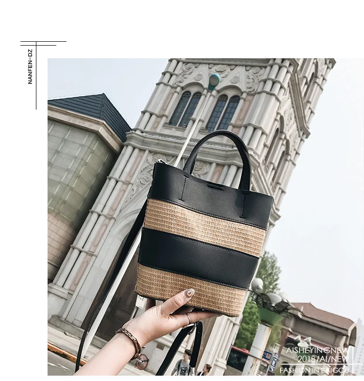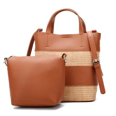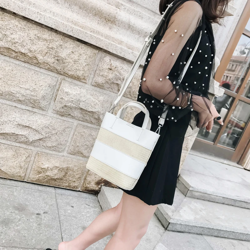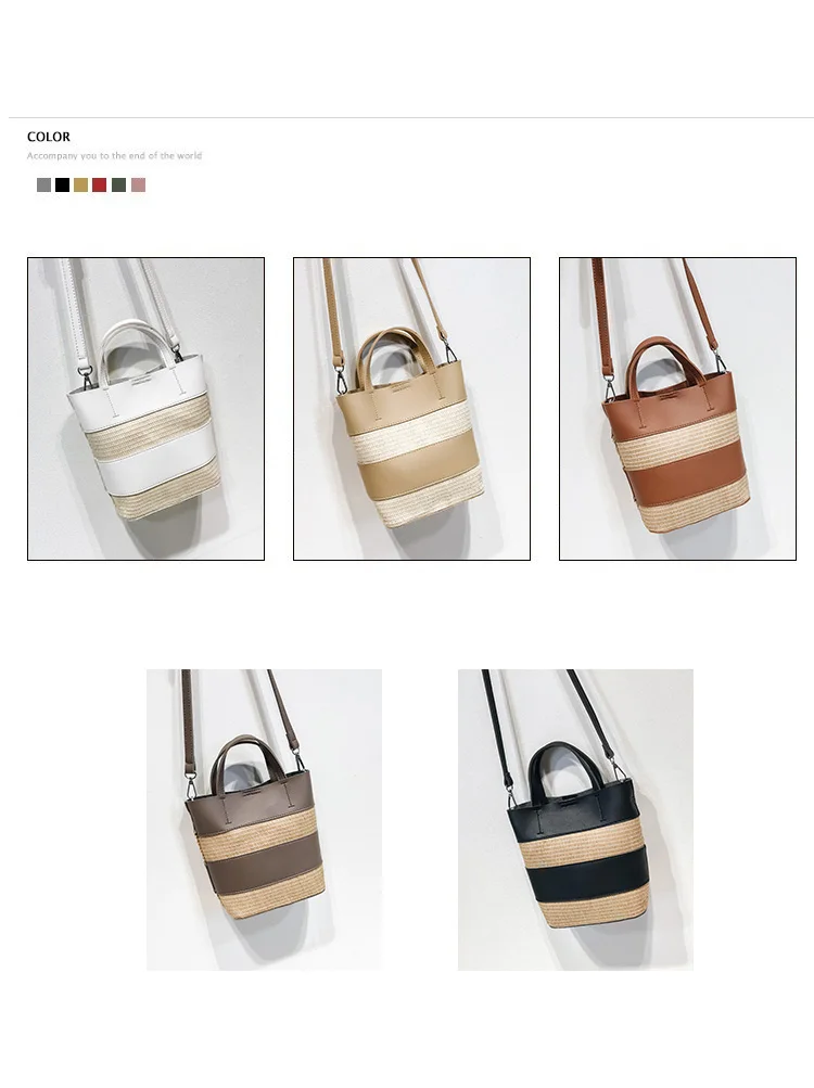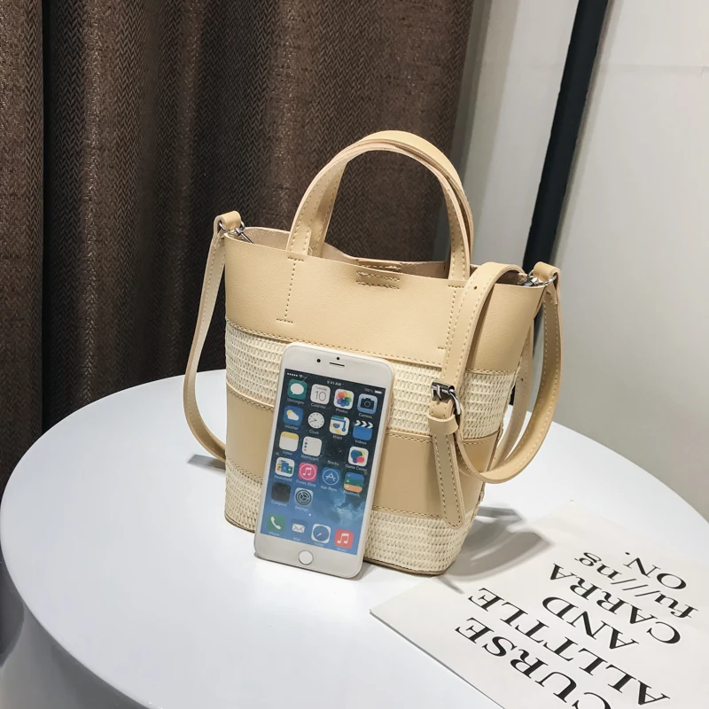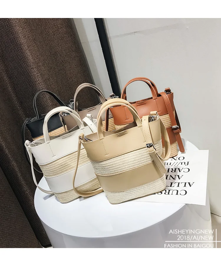 bolsa feminina Luxury:2 PCs straw bucket bags