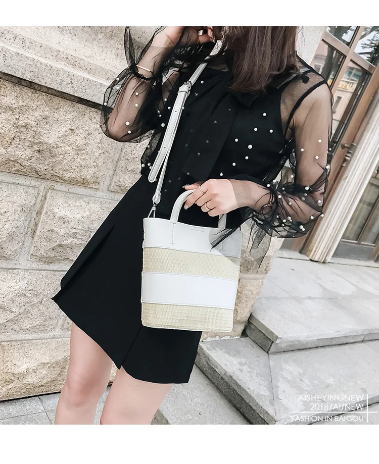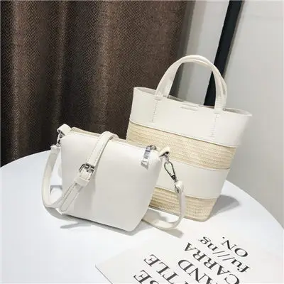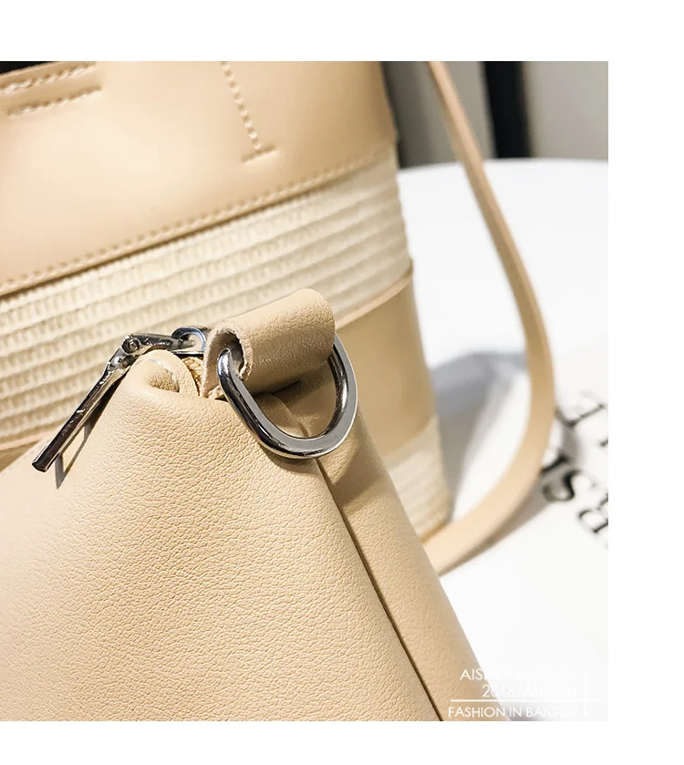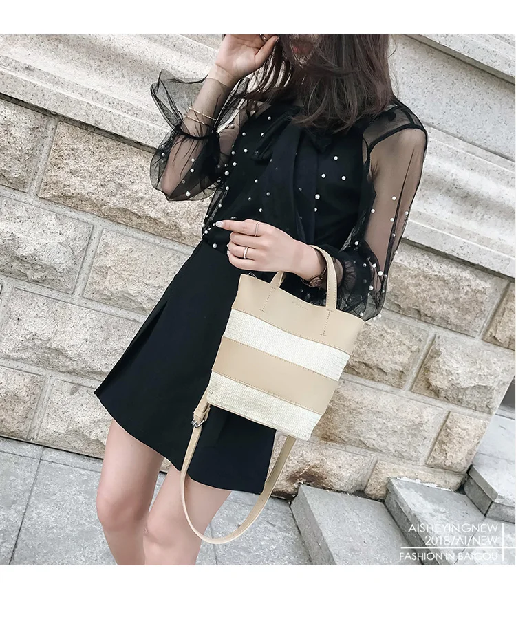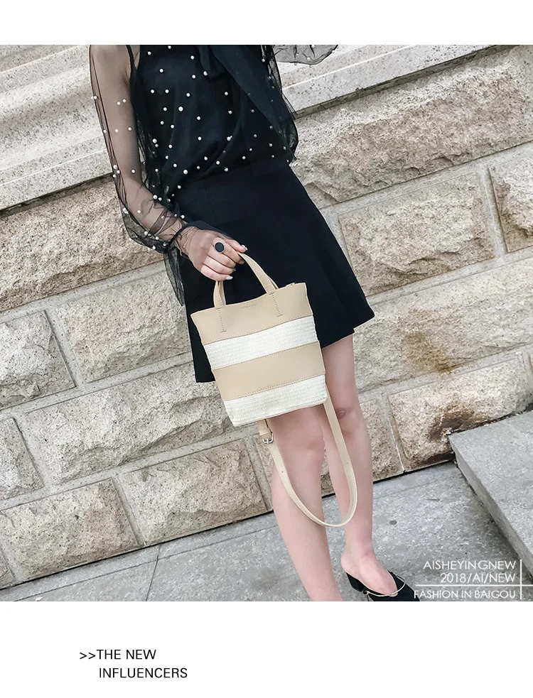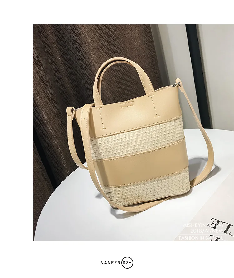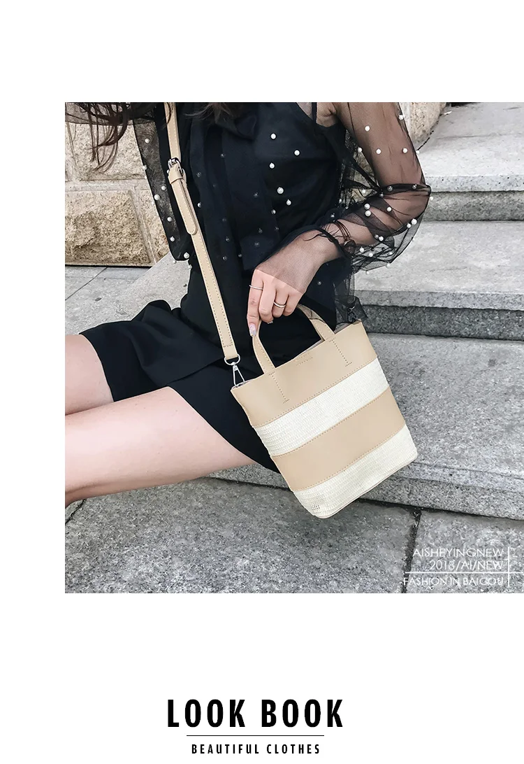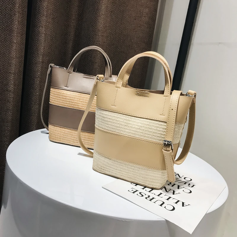 bolsa feminina Luxury:2 PCs straw bucket bags