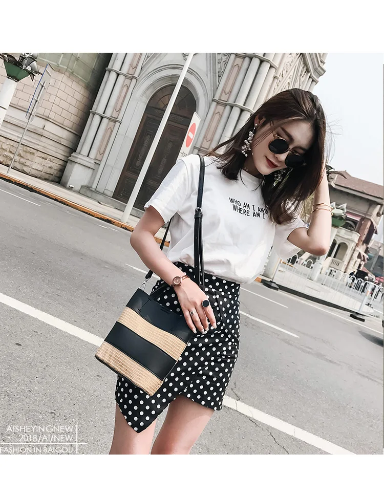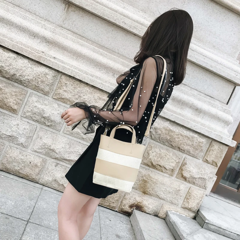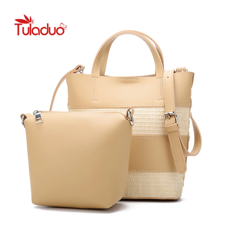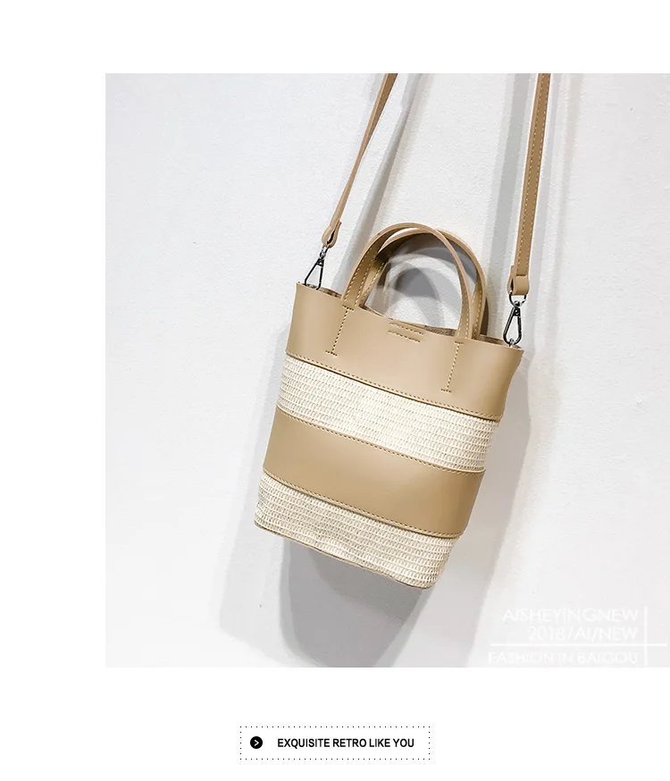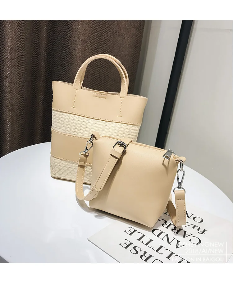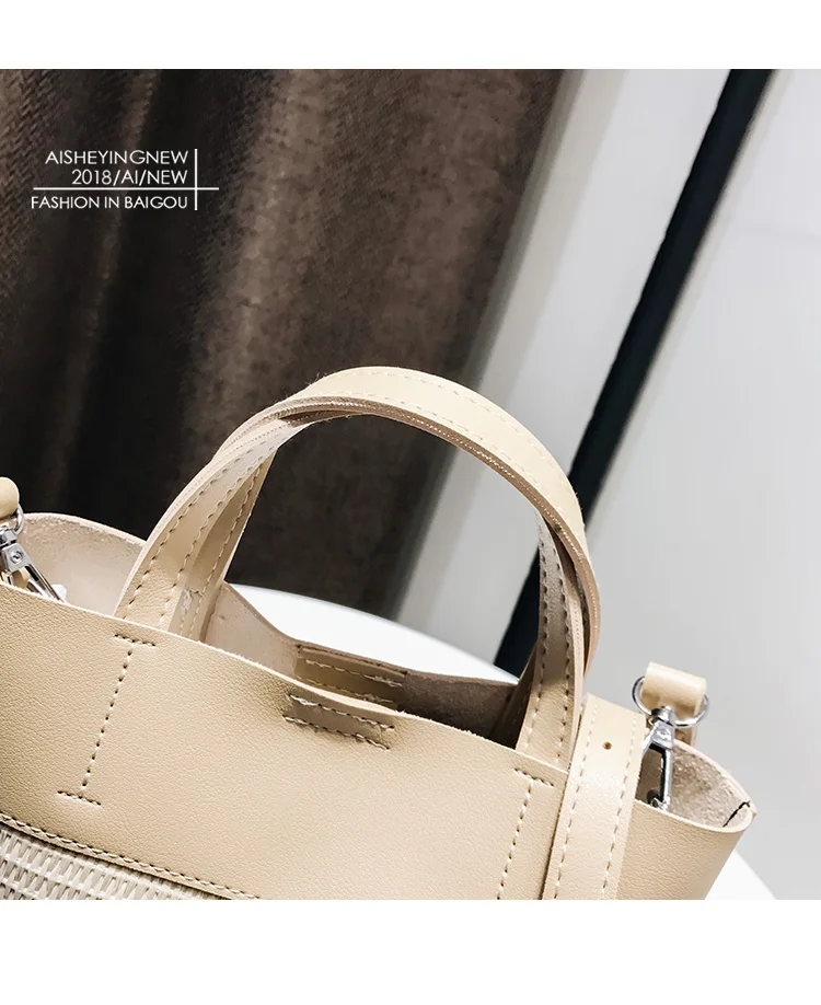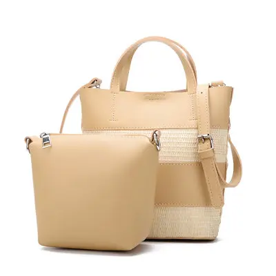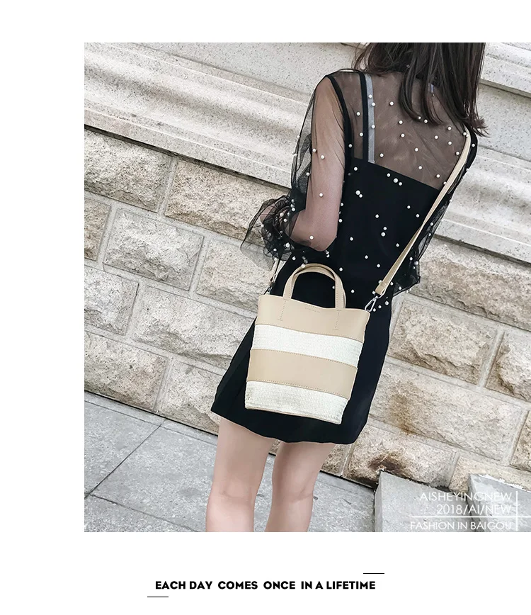 bolsa feminina Luxury:2 PCs straw bucket bags