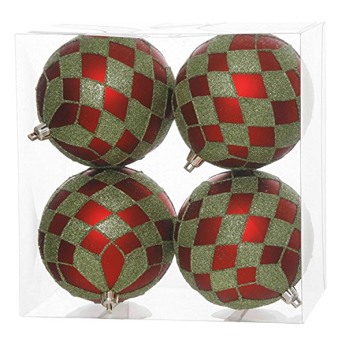 Vickerman Pack of 4 Matte Red and Lime Green Glitter Diamond Christmas Ball Ornaments 4" (100mm)
