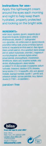 ReleaseDate : 2015-05-15 Studio : bliss Publisher : bliss Binding : Health and Beauty Product Description A lightweight, antioxidant eye cream that locks in moisture, protects and brightens with illuminating powders that diminish the appearance of fine lines and dark circles. 0