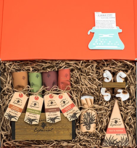 Mexican Riviera Hot Sauce Collection A Thoughtfully Gift Box Four Spicy Sauces Chipotle, Garlic, Cayenne, Whiskey Habanero & 4 Tequila Sipping...