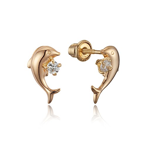 -. Title : 14k Yellow Gold Baby Dolphin Stud Cubic Zirconia Children Screwback Baby Girls Stud Earrings