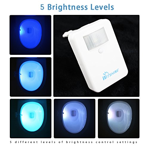 16-Color Motion Activated Toilet Night Light, LED Toilet Seat Nightlight, Motion Sensor Toilet Bowl Light, 5 Stage Dimmer, Splash Proof – By Witshine