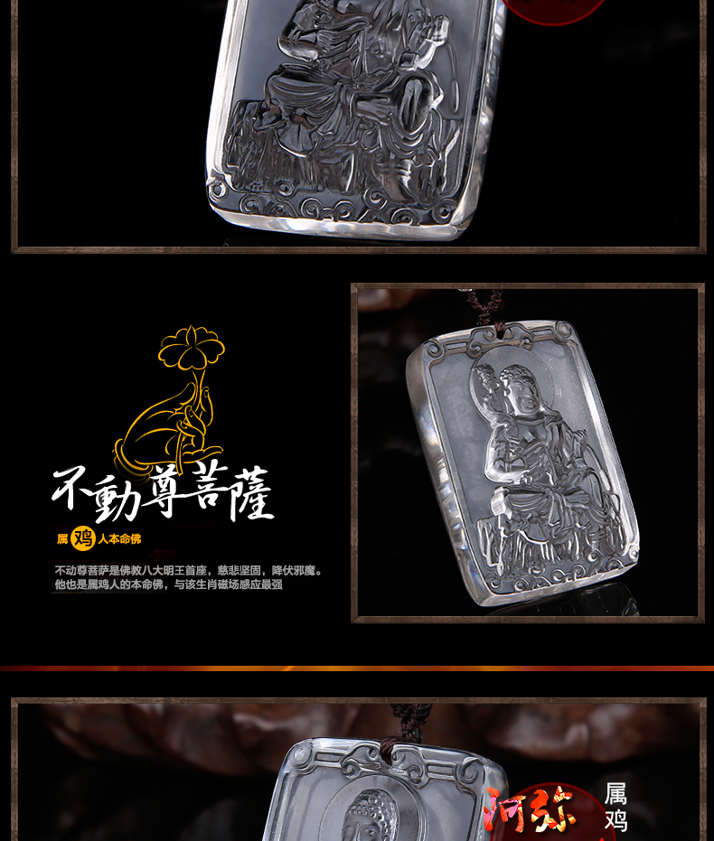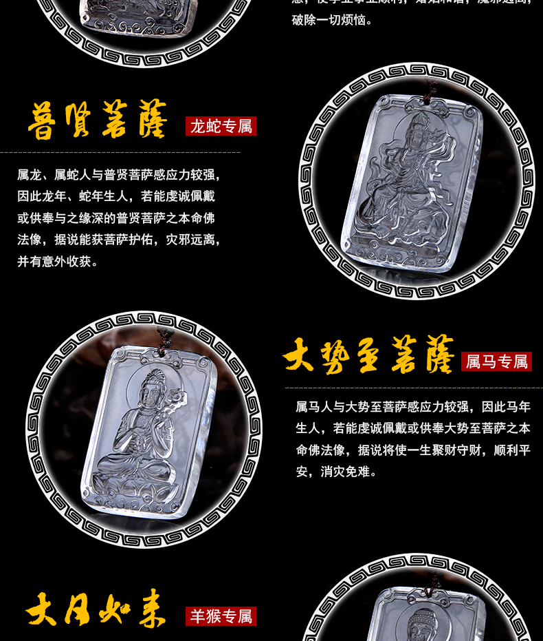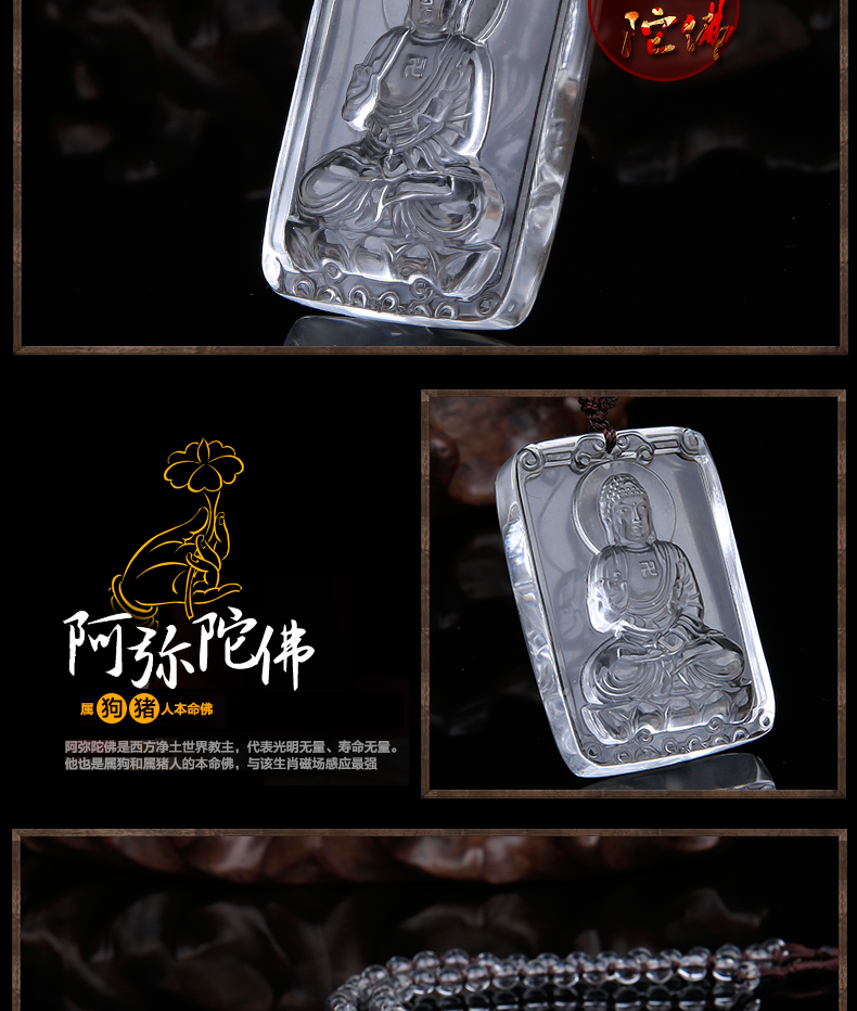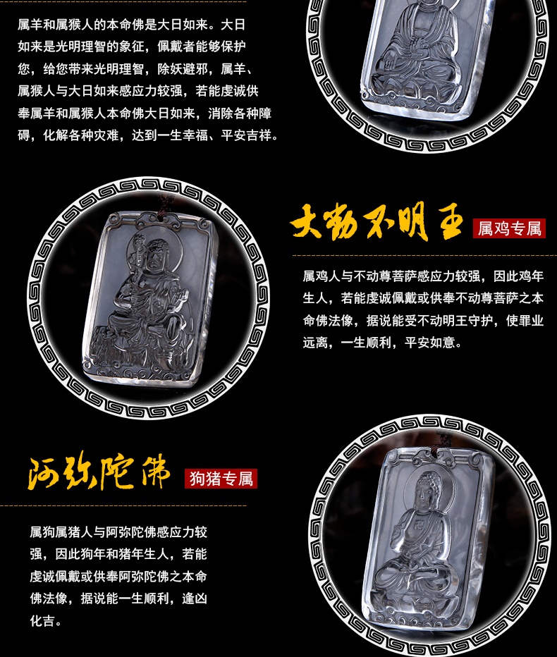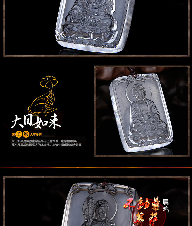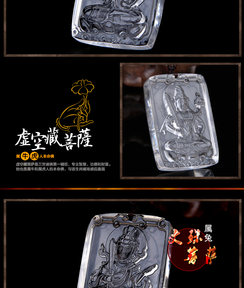 开光白水晶生肖属兔本命佛吊坠文殊菩萨本命守护神男女项链