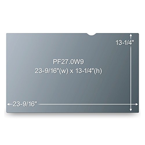 - Feature : Keeps your personal or confidential information safe from prying eyes / You'll see the information on your display while people on either side only see a darkened screen / Designed to fit widescreen desktop LCD monitors with a diagonally measured 27 1/16" viewing screen and a 16:9 aspect ratio / Actual filter dimensions are 23 9/16" wide x 13 1/4" high (598 mm x 337 mm) / Includes your choice of two easy-to-use attachment methods / Reversible, matte side reduces glare and reflections / Lightweight, thin, frameless design / Protects display from dirt, debris and scratches / Cleans easily with a soft cloth and water / Great for high traffic areas and open office environments / Limited 1-year warranty / Fits screen sizes of 27 1/16" diagonally measured (Width 23 9/16", Height 13 1/4") / Screen data is visible only to persons directly in front of the monitor. 3M privacy technology darkens on-screen data when viewed from the side. Keeps your electronic information confidential, making it excellent for use in high traffic areas. / Helps protect your fragile LCD screen from damage / Filter is reversible. Choose matte side for anti-glare or glossy side for increased clarity. / Made in USA