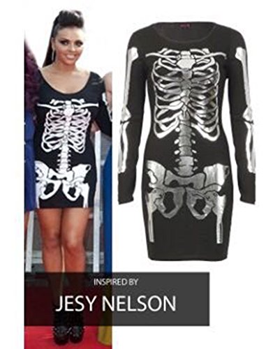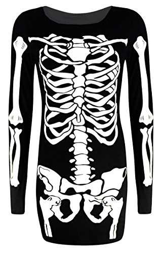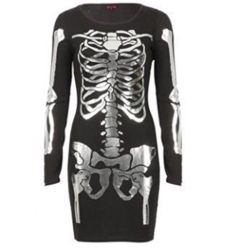 Product Description New Womens Plus Size Long Sleeves Full Skeleton Print Bodycon Dress, Soft And Stretchy Fabric Beautiful Pencil Style Crew Neck Casual And Party Bodycon Dresss 0