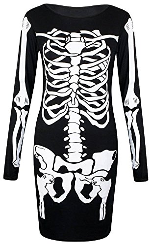 Forever Womens Long Sleeves Skeleton Print Halloween Bodycon Dress