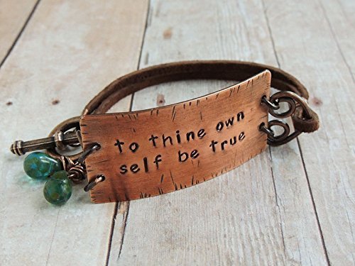 -. Title : To Thine Own Self Be True Copper and Leather Bracelet