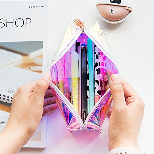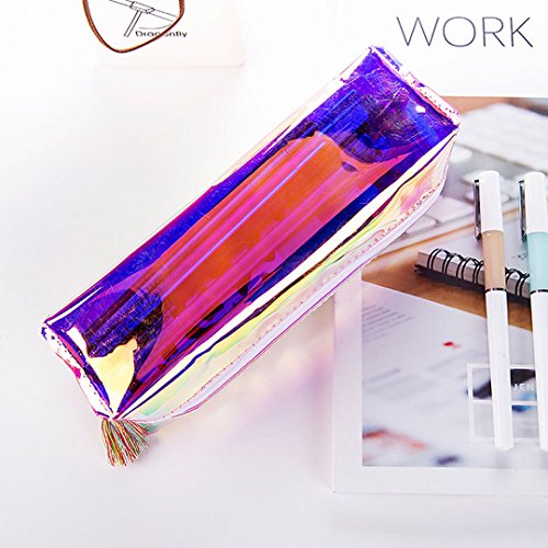 Monique Students Holographic Pencil Case Pencil Holder Tassels Stationery Pouch Women Cosmetic Bag Iridescent