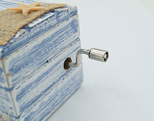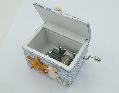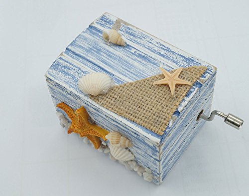 Mediterranean Style Hand Crank Wooden Music Box as Gift Stocking Stuffer for Kid or lover- Starfish and Shell