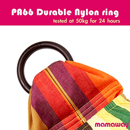 -. Feature : FOR BABY'S FIRST ADVENTURE: Mamaway Ring Sling is an all-around baby carrier perfect for your newborn. The right fit and customizable shape gives your baby the perfect comfort, snugness and love they deserve. Position your baby any way you want; upright or lying down, in front, on your hip or behind your back. Ideal for hands-free cuddles, getting things done around the house or out and about with your baby. / BABY IS SAFE AND SOUND: No need to worry whether your baby is in a safe position or breathing properly. Your ring sling is rigorously tested super strong nylon rings have been tested to carry up to 50kgs of weight for 24 hours, giving you the peace of mind you deserve. Made of 100% cotton fabric that provides full support once tightened. Its double ring design means no set-up required and allows super fast adjustment for babies and toddlers of all sizes. / ERGONIMICALLY DESIGNED FOR YOUR BABY: This ring sling was designed to give extreme comfort for baby and mom. Okay, and maybe Dad too. Unlike other carriers, the Mamaway Ring Sling supports your baby in their most natural upright or resting position, so they can be comfortable and settled for long period of time. Strategically created to distribute most of the baby's weight across your back and off your shoulders, giving you more time for skin-to-skin bonding with less effort. / BREASTFEED WITH PRIVACY AND SECURITY: No more cranky and hungry babies! You can easily set up the Mamaway Ring Sling for breastfeeding anywhere, anytime. No need to buy other products to make feeding time comfortable. Your Mamaway Ring Sling supports your arm during feeding giving you the functionality of a breasfeeding pillow. Its generous "tail" fabric feature works as a cover for optimum breastfeeding privacy. / EASY STORAGE AND CLEAN: Made of 100% lightweight cotton, making it easy to carry around in your bag especially during the summer season. It weighs just a little over 14.4 ounces and can be effortlessly tucked away when not in use. It is compact enough to be stored in your handbag or your car's glove box. You can even transform it into an attached carry pocket. Cleaning it is a breeze. Just throw it in a washing bag and straight in your washing machine.