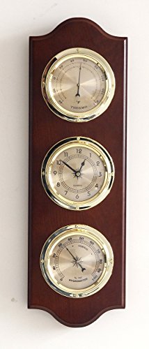 - The rich, solid wood framed dark cherry weather station measures temperature (in °F only), humidity (%) and includes a quartz time clock.