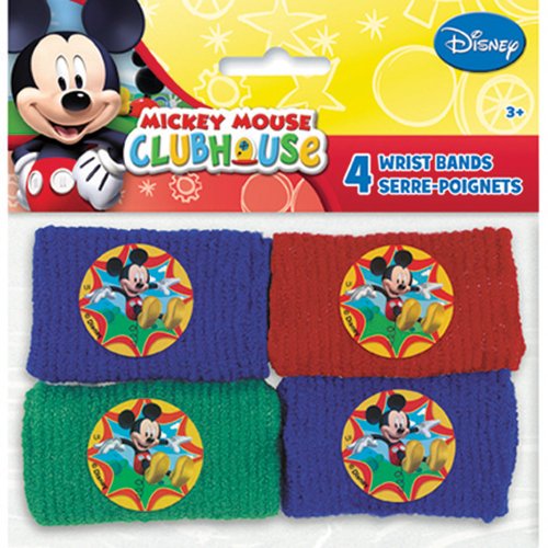-. Feature : Mickey Mouse Wristbands - Party Favors - 1 per Pack / Oh, boy! Our Mickey Wristbands is an assortment of brightly colored terry-cloth sweatbands embellished with an image of Mickey popping from Mickey Park! These fun wristbands make perfect favors for a Mickey Mouse Clubhouse themed birthday / Package includes 4 Wristbands / 6.5" x 4"