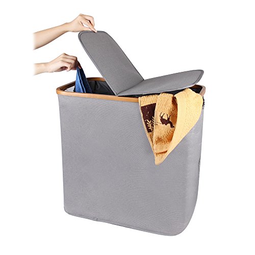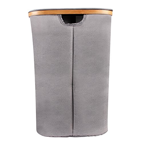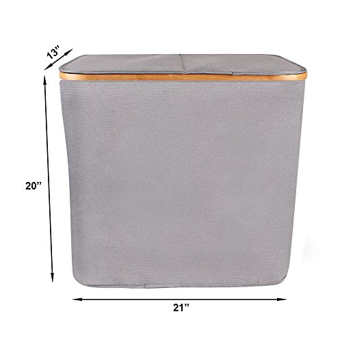 Youth Union Laundry hamper With Double Lid, Bamboo Canvas Laundry Basket Bin Clothes Sorter, Easy Assembly, 90 L, Grey