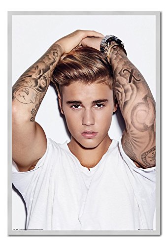 -. Title : Justin Bieber Hands On Head Poster Magnetic Notice Board Silver Framed - 96.5 x 66 cms (Approx 38 x 26 inches)