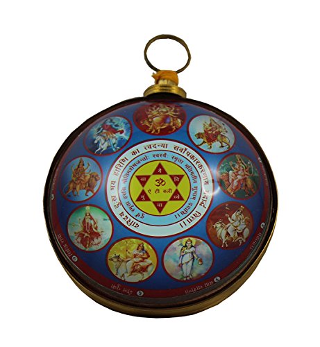 Odishabazaar Sarv Dukh Bhay Dwarini Yantra Round Wooden Base with Glass Top