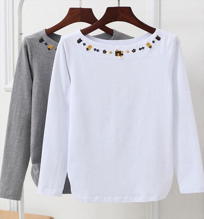 ●商品の特徴・首元にカラフルな刺繍を施した、長袖カットソー。・素材は柔らかなコットンの伸縮性が優れたカット生地を使用し、着心地はとっても楽チン♪・インナーとしてご利用頂けるよう、比較的ややタイトな仕様になっており、アウターとの相性はバッチリ。・裾の両サイドはシャーリングが施されているので、インナーとしてだけでなく、これ一枚だけでも手を抜かないお洒落な装いに。・コーディネート次第でオールシーズン長く活躍する、お勧めアイテムです♪●サイズ展開 【M】 着丈54cm バスト82cm 肩幅35.5cm 袖丈52cm 【L】 着丈55cm バスト84cm 肩幅36.5cm 袖丈53cm※平均での採寸となりますので、多少の誤差が生じる場合がございます。ご了承くださいませ。●カラー展開 ホワイト グレー ※画像をご参照下さい。(パソコン版でご覧頂ければ、カテゴリー毎にお探し易くなっております。)●商品詳細 【素材】:コットン・ポリエステル 【厚み】:普通 【裏地】:なし 【シルエット】:ややぴったり 【伸縮性】:あり 【付属品】:なし (コーディネート使用の衣類、アクセサリー等は付属しません)