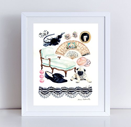 Title : Marie Antoinette Paris Collage Mood Board Giclee Print of Watercolor 8 x 10, 11 x 14 inches Fine Art Poster Versailles Laduree Rococo Paris Travel Photography France Queen
