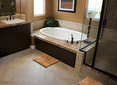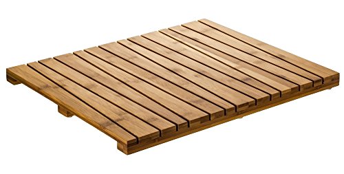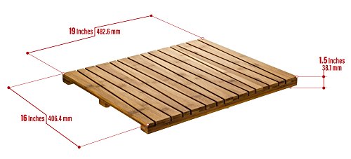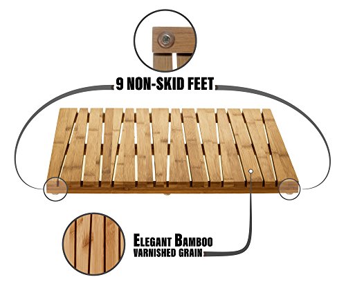 WATER RESISTANT AND DURABLE : A better alternative than fabric or rubber bath mats, this vented bamboo shower and bathroom mat is made of eco-friendly and naturally water-resistant bamboo to help keep surfaces dry