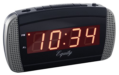 The Equity 30240 features dual front-speaker alarm capable of up to 95 decibels. The .9-inch red LED display indicates the time as well as alarm on and PM time. The clock is AC powered and features a 9-minute repeating snooze function.