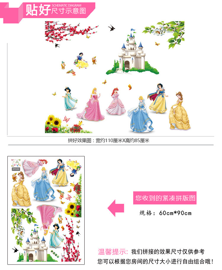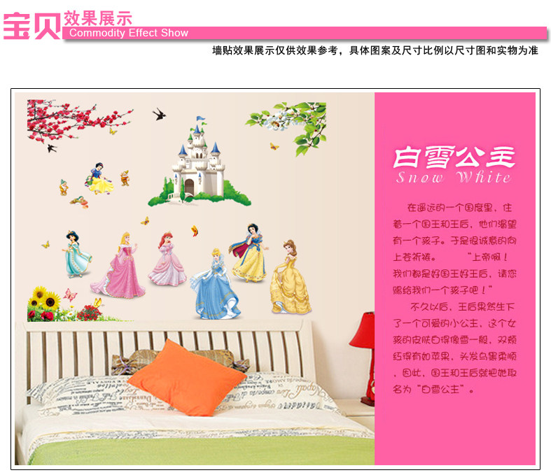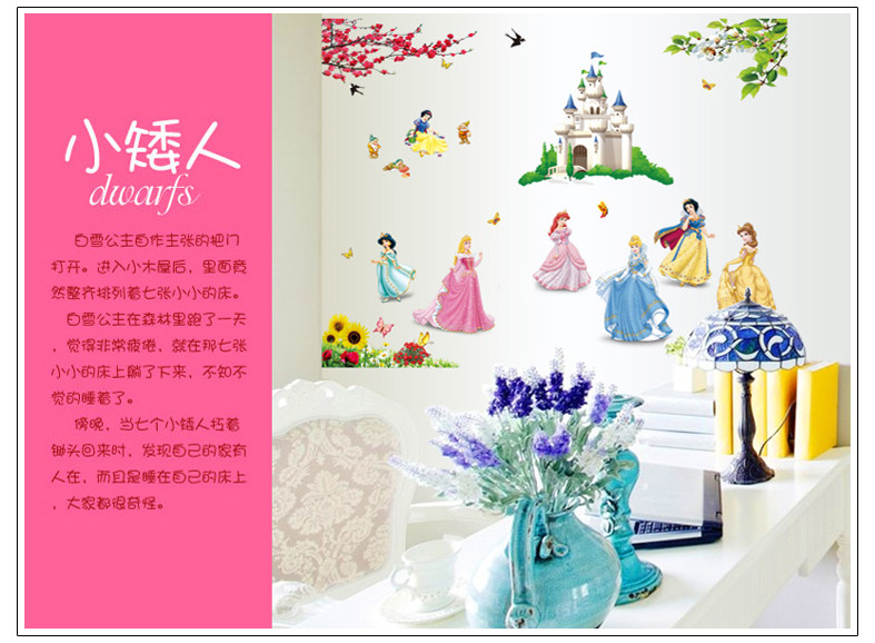 卡通墙贴纸贴画女孩房间墙上墙壁装饰公主儿童房温馨卧室壁纸自粘