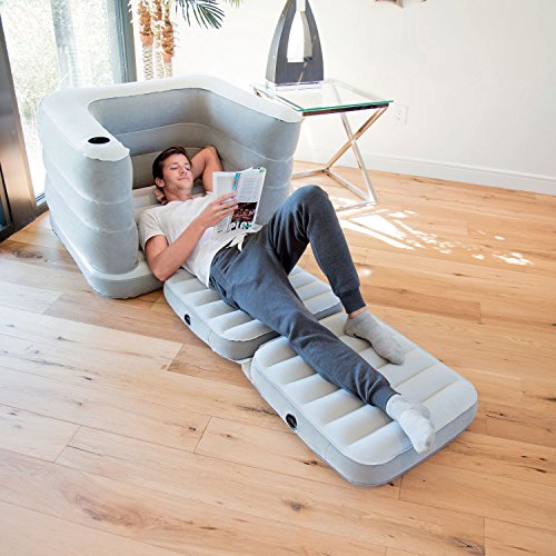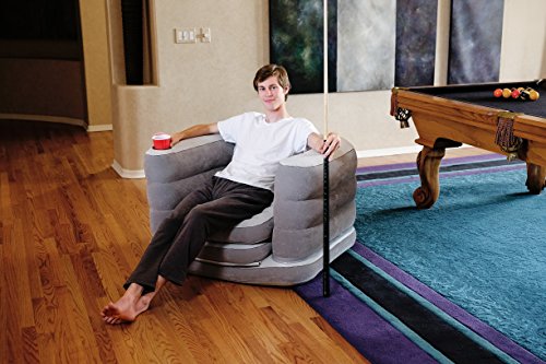 -. Feature : Multi-functional; use as a chair or bed / Flocked surface and sides / Sturdy I-beam construction / Super comfortable, backrest and armrests with 1 cup holder and a pillow / Chair Inflated Dimensions: 79" x 40" x 25"