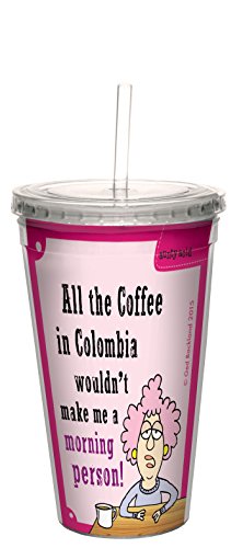 Tree-Free Greetings 16-Ounce Double-Walled Cool Cup with Reusable Straw, Aunty Acid All The Coffee (CC98544)
