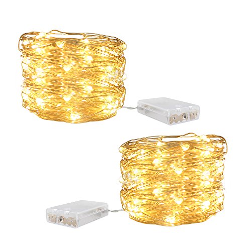 LED String Lights,2 Pack Fairy Lights 33ft with 100 LED Battery Operated Waterproof Decorative Copper Wire Firefly Lights for Bedroom, Patio, Garden, Gate, Yard, Parties, Wedding ( Warm White )
