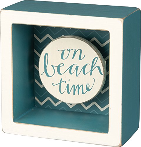 On Beach Time - Coastal Blue Shadowbox Mini Box Sign - 3-1/2-in