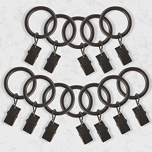 Studio : Chicology Publisher : Chicology Binding : Kitchen Product Description Hang Curtains with ease and style. Try Chicology 3/4-in. Curtain Clip Rings, Set of 12 to transform any fabric into a drapery panel. These provide the perfect solution for curtain panels that have pockets too small or panels that have tabs, and allow you to create a stunning accent to your home. Each clip ring is made of high quality 100% steel, and will be a lasting addition to your home decor update. They are ideal for curtain rods that are 3/4-inch diameter. Each ring is 1-inch inner diameter. These clip rings will provide the ideal amount of space to ensure smooth gliding when opening and closing the attached curtains. Available in the following finishes: Black, Bronze, Satin Nickel, and Antique Brass, the curtain clip rings add a modern sense of style to any space. They will of course work perfectly well with any type of curtains or drapery, from tailored pleats, pinch pleat, inverted pleat, goblet, rod pocket, back tab tab top curtains. Check out Chicology Blinds Shades, as they can be the perfect backdrop to your dramatic curtain overlay. Easy to use, effortlessly operated, and sleek styled, Chicology Curtain Clip Rings are ideal for all window drapery from living room, dining room, bedroom, office, pool house sunroom. 0