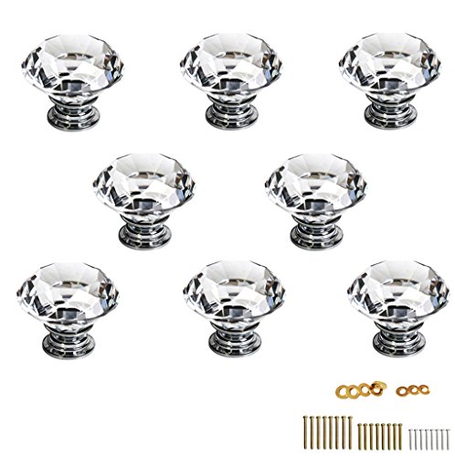 -. Title : Sumnacon 10 Pcs 30MM Clear Crystal Glass Door Knobs - Diamond Wardrobe Doorknob/Crystal Glass Drawer Knobs/Cabinet Cupboard Handle Pull Knobs/Door Pull Handle with Screws with 3 Kinds Screws