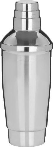 -. Feature : 700-milliliters / 25-ounce cocktail shaker / Made of stainless steel / Cap is a 3-step measuring jigger to ensure the perfect mix every time; cap measures: 0.5, 1 and 2-ounces / Integrated strainer design provides controlled pouring / Dishwasher safe