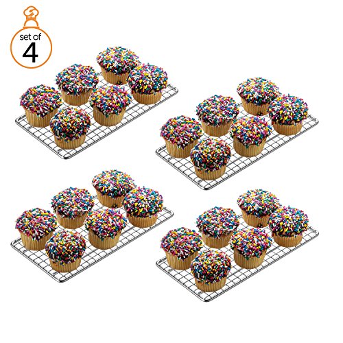 Cooling Racks for Baking by ChefGiant-Draining Pan Grate-Cross Wire Chrome Plated-Quarter Size, 4 ¼” x 8 ¼”-Oven Safe for Cooking, Roasting, Grilling-Perfect to Cool & Bake-Set of 4