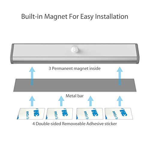 Easy to use and install: The product is wireless, so there is no need for any screws or tools, no plugging-in,and no electric wires required. Because of the magnet residing inside, you can directly attach the product to any iron surface, OR stick the iron material attached to the LED light to a non-iron surface using 3M adhesive stickers. When you need to charge it or change its location, you can take it off anytime.