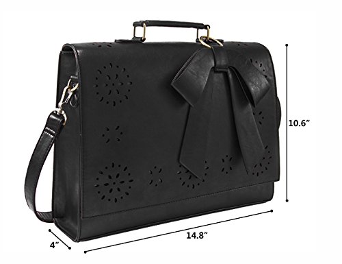 Adjustable and detachable shoulder strap with 20" - 55'' drop. Flap top with strong magnets snaps closures; The bow in the front adds a nice feminine touch to a professional looking bag.