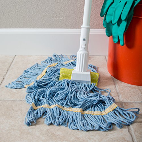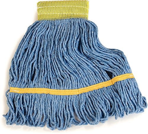 Carlisle 369442B14 Looped-End Premium Mop Head With Yellow Band, Small, Blue (Pack of 12)