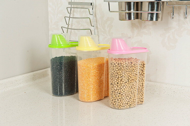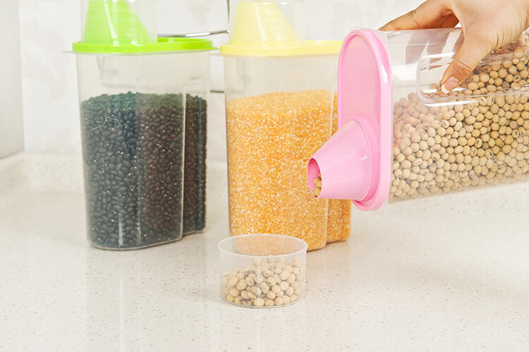 This food storage helps to store any food or snacks and provide one hole to pour out the food conveniently without open up the lid.