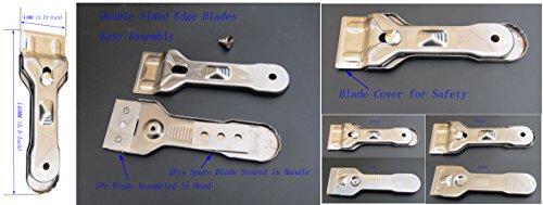 - 1Pc Metal Cooktop Scrapers. Stainless steel (201# stainless steel) body, rust resistant. Come with 3 cleaning double sided blades (1 in head, 2 spare blades stored in handle), featured a blade cover for saftey