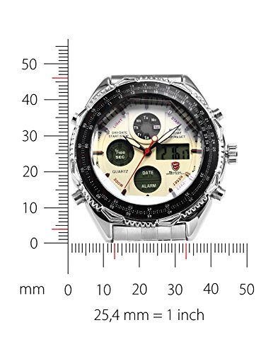 Description: - Double movement with Chronograph is leading over than other same level products. - Digital and Analog can be displayed at the same time. - Stopwatch function - Alarm function - Day and Date with LCD display. - Low power consumption, more durable. - Durable gears and material. - It is fantastic that we integrated such a lot of functions in this slim size.