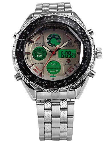 Double movement with Chronograph is leading over than other same level products.Digital and Analog can be displayed at the same time