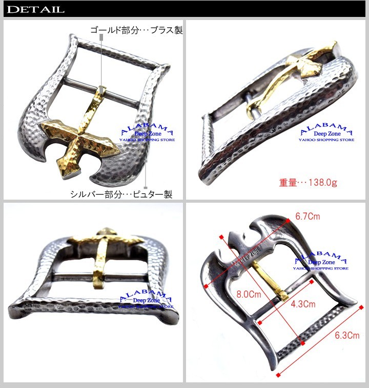 【素材】 ピューター +ブラス【サイズ】 H=約8.0cm W=約6.7cm【重量】約138g※装着可能ベルト幅:4.3cmまで