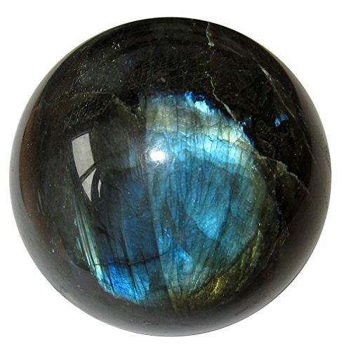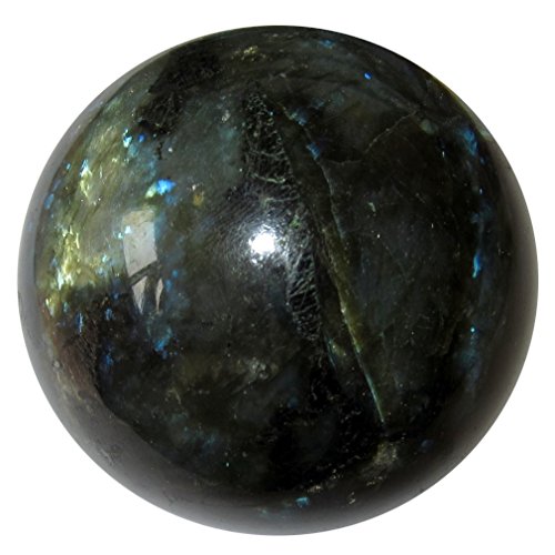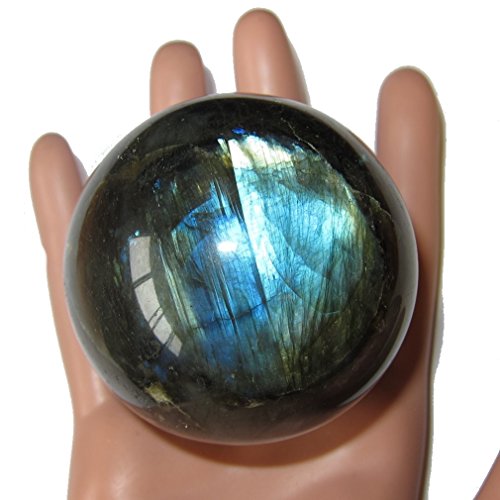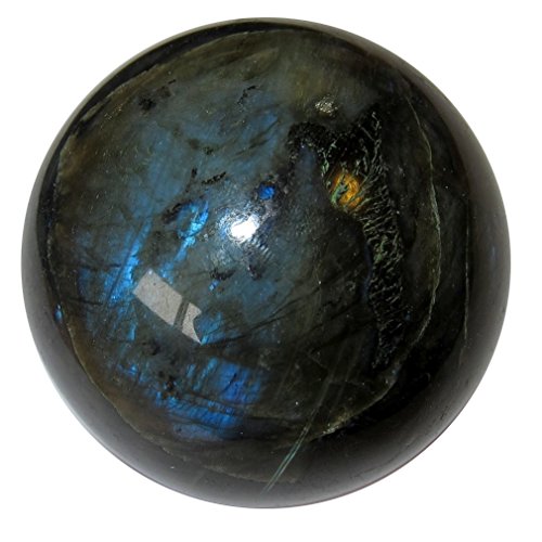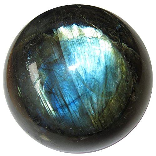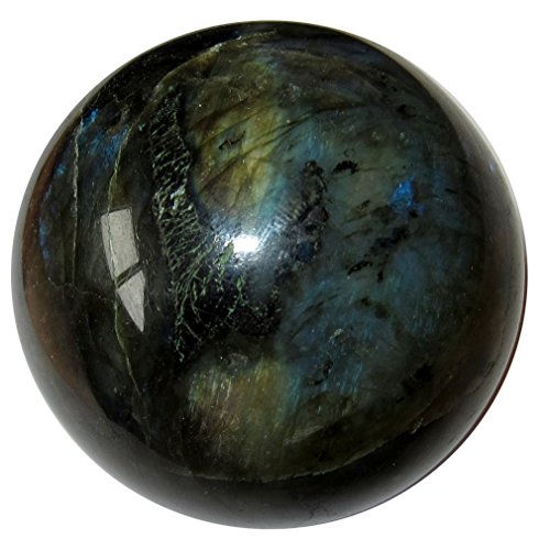 Your crystal ball is made from stunning labradorite. This rugged charcoal and black stone has gorgeous rainbows that flash out under the correct angle of the intense lighting. It is polished, yet retains many natural rough lines and grooves. Receive this exact beauty pictured when you order from Satin Crystals.