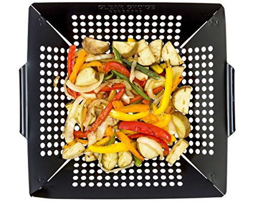 Clear Choice Cookware Vegetable Grill Basket BBQ Grill Pan Quesadilla Topper - Non Stick Barbecue Accessories also for Chicken Meat Fish from