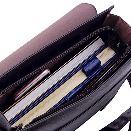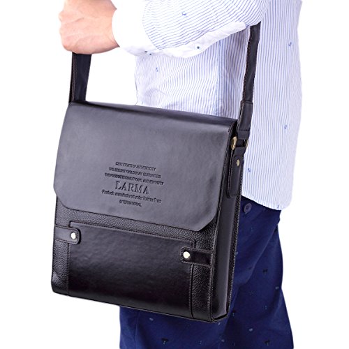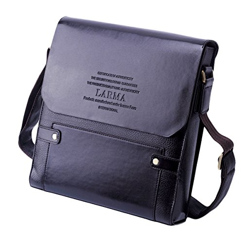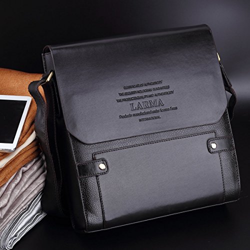 -. Title : LARMA Newest Fashion Men's Genuine Leather RFID Blocking Secure Briefcase Shoulder Messenger Bag , L1-Brown