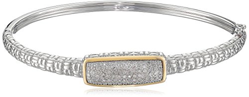 -. Binding : Jewelry -. Brand : Amazon Collection -. Color : White -. Department : Womens -. EAN : 0096303228258 -. Feature : Bangle bracelet in sterling silver with woven texture featuring pave-set diamonds trimmed in 14k yellow gold / Box tongue with safety closure / Single cut diamonds have an average of 17 facets / All our diamond suppliers confirm that they comply with the Kimberley Process to ensure that their diamonds are conflict free. / Imported / Carat weight listed is the total for all stones. -. Label : Amazon Collection -. Manufacturer : Amazon Collection -. Model : ESH97983-AM -. MPN : ESH97983-AM -. PackageQuantity : 1 -. PartNumber : ESH97983-AM -. ProductGroup : Jewelry -. ProductTypeName : FINENECKLACEBRACELETANKLET -. Publisher : Amazon Collection -. Studio : Amazon Collection -. Title : Sterling Silver and 14k Yellow Gold Diamond Bangle Bracelet (1/4cttw, I-J Color, I2-I3 Clarity), 2.75" -. UPC : 096303228258